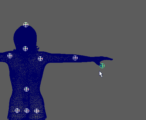 - 展开“3) 用户调整导向”(3) User Adjustment of Guides),然后重新定位关节导向以更好地适应网格。有关每个导向调整图标的描述,请参见快速装备工具。