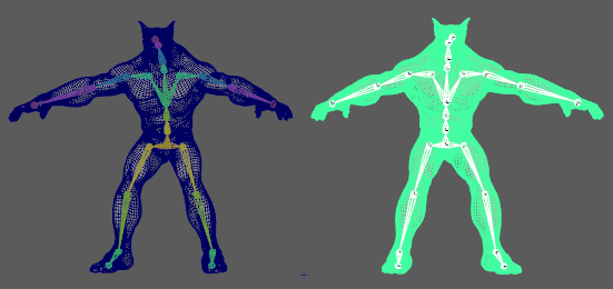 - 现在,对目标角色执行相同操作。(右键单击髋部关节,选择“选择层次”(Select Hierarchy),然后按 Shift 键并选择网格。)
