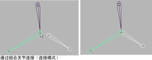 先插入所有必需的关节,再将 IK 控制柄添加到骨架或对角色蒙皮。否则,如果将关节插入带有 IK 控制柄的关节链,必须重做 IK 控制柄。此外,蒙皮后插入关节可能会导致不需要的变形效果。