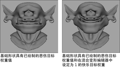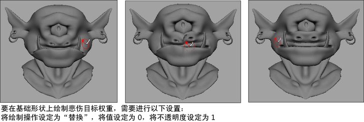 通过“绘制融合变形权重工具”(Paint Blend Shape Weights Tool),可以使用 Maya® Artisan™ 笔刷在具有融合形变变形器(请参见创建融合形变变形器)的对象上绘制融合变形权重。