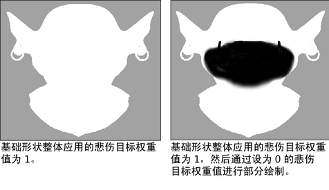 该工具可用于逐顶点设置融合变形权重,从而更精细地控制目标形状对基础形状所具有的影响量。使用该工具还可以为每个目标形状绘制权重,并且可以混合目标形状及创建部分目标。