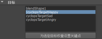 该按钮会为在目标列表中选定的目标形状设置绘制的融合变形权重的关键帧。