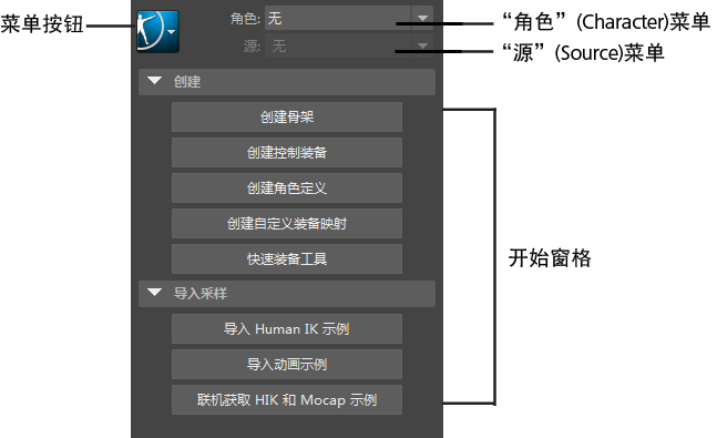 窗口 > 动画编辑器 > HumanIK (Window > Animation Editors > HumanIK)