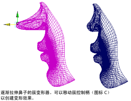 使用簇变形器,可以通过改变影响程度来控制对象上的一组点(CV、顶点或晶格点)。变形器将变换应用于点的方式允许您调整每个点受影响的精确百分比。