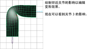 - 使用“绘制蒙皮权重工具”(Paint Skin Weights Tool)绘制关节影响折痕的方法。