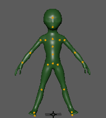 - 您可手动定位供 Maya LT 用于创建骨架的导向辅助对象,以便使用移动工具更好地匹配角色网格。使用以下选项有助于进行定位。