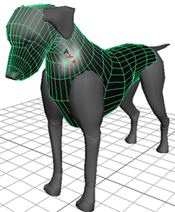 也可以使用平滑蒙皮影响对象来控制平滑蒙皮变形效果。平滑蒙皮影响对象可以是任何 NURBS 曲面、NURBS 曲线,或多边形曲面(网格)。有关详细信息,请参见平滑蒙皮影响对象。