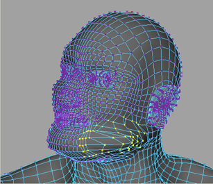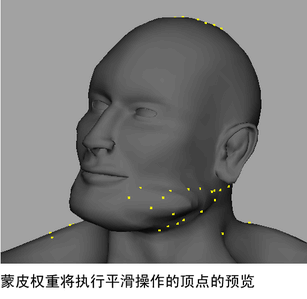 - (可选)启用“预览”(Preview),然后单击“应用”(Apply)以在场景视图中亮显将通过“平滑蒙皮权重”(Smooth Skin Weights)操作进行平滑的顶点。顶点亮显为黄色。