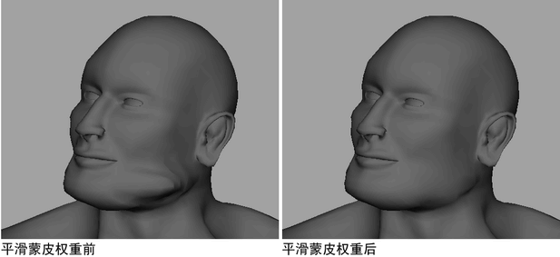 注: 在边界曲面上平滑所有顶点时,需要设定大于 0.0 的“所需权重差异”(Required Weight Difference)值。