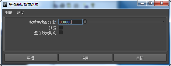 - 选择“蒙皮 > 平滑蒙皮权重”(Skin > Smooth Skin Weights) >
