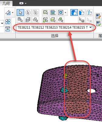会为四面体单元指定识别标签“TE”。当您选择四面体单元时,选择列表中会列出标识符(由字母 TE 和其后面的数字组成)。