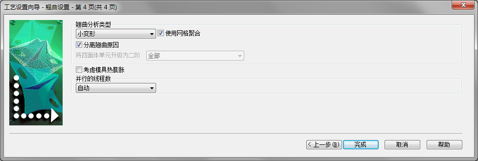 合并这两个选项,将使得计算因收缩不均、冷却不均和纤维取向而引起的翘曲的速度要比未使用网格聚合快很多。