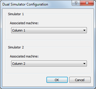 Dual Simulator Configuration dialog to specify which simulator is to be used to check each machine column.