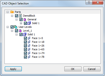 In this example, only Face 1~5 and Face 1~18 in Level_1 can be inspected: