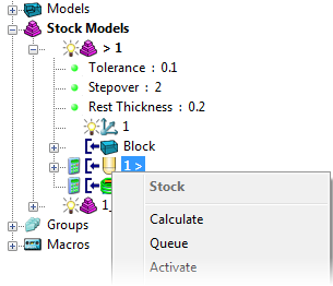 队列 - 选择此项可检查用于计算残留模型的所有参数是否合理、向计算队列添加残留模型,以及关闭对话框。PowerMill 空闲时,会在后台计算残留模型。