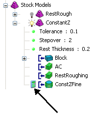 同样,如果对“AC”残留模型状态使用“之后应用刀具路径”,则会使“残留粗加工”残留模型状态无效。
