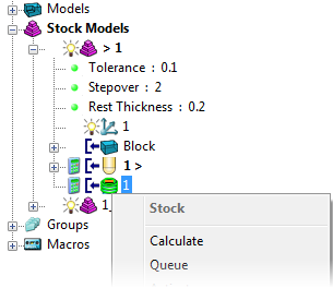 队列 - 选择此项可检查用于计算残留模型的所有参数是否合理、向计算队列添加残留模型,以及关闭对话框。PowerMill 空闲时,会在后台计算残留模型。
