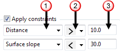 应用约束 - 选择此选项可将约束应用到切入切出,然后从列表中选择一个约束。从列表中选择一个约束可再创建一个域以进一步应用约束。第一选择和第二选择连接最多有 2 个约束。如果选择多个约束,则必须满足所有这些约束,系统才会应用连接。