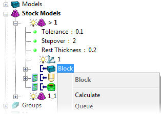 队列 - 选择此项可检查用于计算残留模型的所有参数是否合理、向计算队列添加残留模型,以及关闭对话框。PowerMill 空闲时,会在后台计算残留模型。
