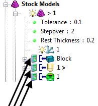 同样,如果对“AC”残留模型状态使用“之后应用刀具路径”,则会使“残留粗加工”残留模型状态无效。