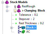 注: 如果存在计算的刀具或刀具路径状态,则无法更改毛坯。在本例中,必须先删除计算,再更改毛坯。