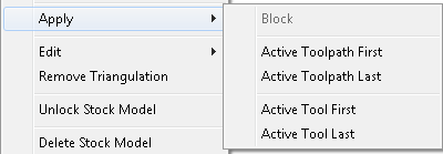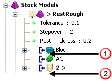 - 刀具路径 - 单击此按钮可将激活刀具路径应用于残留模型并将刀具路径状态置于残留模型状态列表的顶部。如果残留模型未应用毛坯,系统会自动应用与刀具路径关联的毛坯。如果没有状态激活,系统会在最后一个残留模型状态设置为激活状态后添加刀具路径。