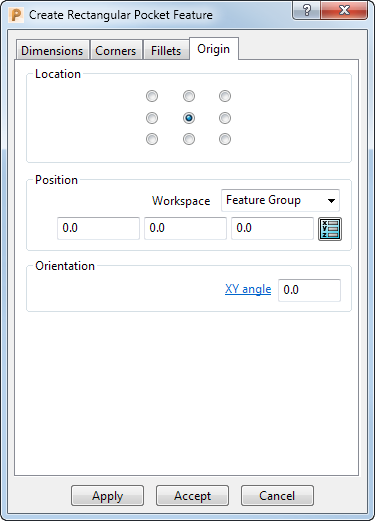 位置 - 选择一个“工作空间”,并输入特征的坐标,以便相对于已选工作空间来定位特征。