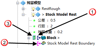 “残留模型”表示加工工艺中任意点的未加工毛坯。“残留模型”是在残留加工时,使用参考刀具路径的替代方法。