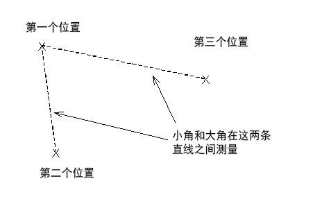 指定三个位置来定义两条直线,如下所示:小角与大角在这两条直线之间测量: