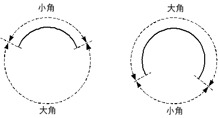 小角和大角是圆弧扇形与圆弧缺失扇形的跨,如下所示: