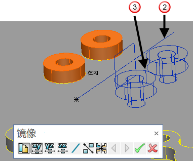 使用“镜像”工具栏对选定实体面镜像的步骤:
