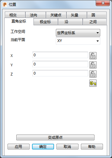 变成原点 - 单击此按钮可将对话框中指定的坐标定位为原点。任何相对坐标都从该原点开始测量。