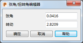 您可以修改沿纵向线或穿过横向线定义的张角和扭转角。