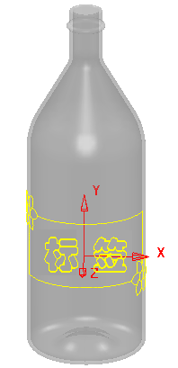 下面的示例使用圆柱投影和位于瓶子曲面上的激活工作平面。