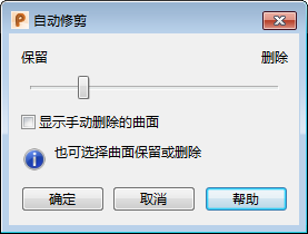 自动 - 选择此选项可以让 PowerShape 根据您的滑块设置来计算保留或删除曲面的选项。