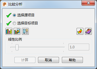 单击“可视化”选项卡 >“模型”面板 >“分析”以显示“比较分析”对话框:
