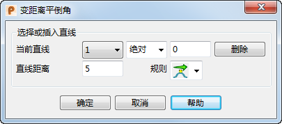 当您单击“应用”以创建平倒角时,“变量”选项将可用。如果已选择路径,但未创建平倒角,请选择“高级”按钮以创建变距离平倒角。如果选择此选项,则可以编辑沿最后创建的平倒角的距离。