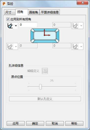 使用“拐角”选项卡可定义型腔上拐角精加工的类型。