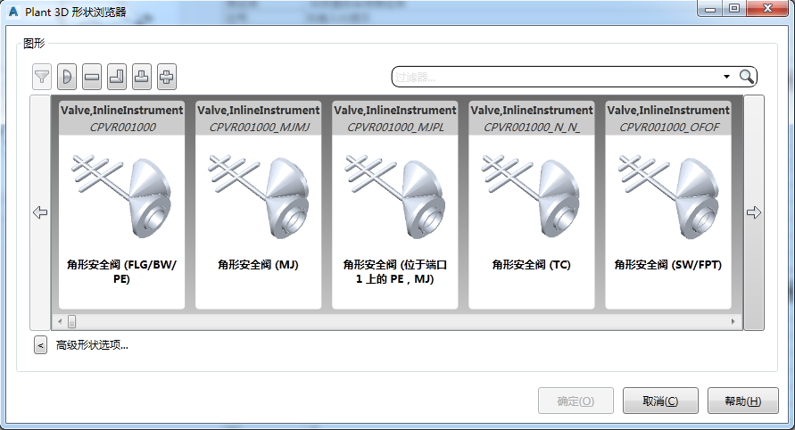 “Plant 3D 形状浏览器”对话框