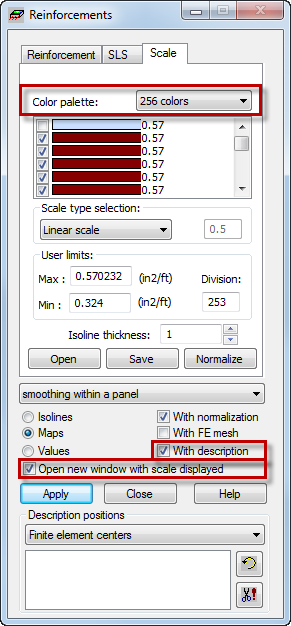 - At the bottom of the Reinforcements dialog select the following options:
