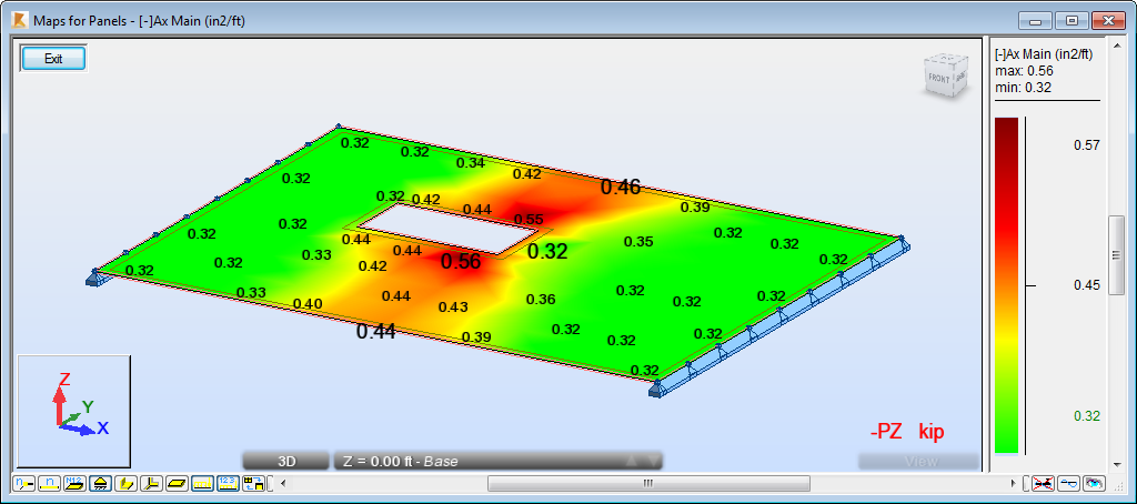 Note: As you can see, the largest amount of required reinforcement is located in the red areas of the plate, therefore the results are appropriate regarding the opening and the method of plate support.