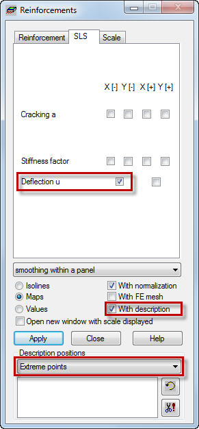 - Go to the SLS tab, and deselect Deflection U in the X/Y [-] direction.