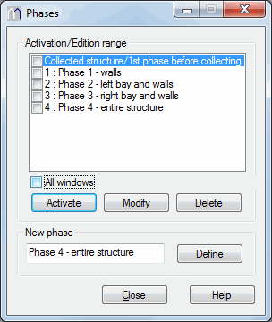 1. Define a structure phase in the dialog. The phase is moved into the Activation/Edition range field.