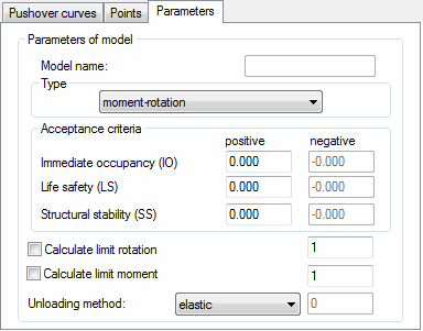 After selecting the Parameters tab in the Definition of non-linear hinge model dialog, the following dialog displays.