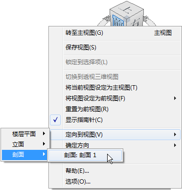 用户可以使用 ViewCube 将三维视图设置为项目中的任何平面、标高、截面或三维视图的方向。