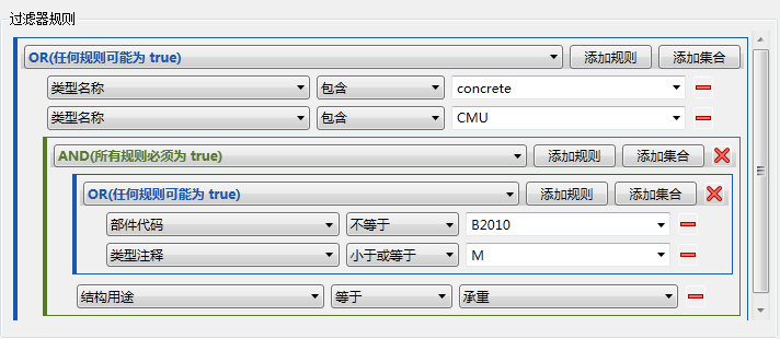 当过滤器规则包括多个嵌套标高时,请确保为相应规则集单击“添加规则”。