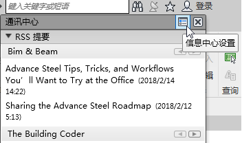 如果您拥有 Autodesk 帐户和通讯中心,则可以在“信息中心设置”对话框中自定义通知行为、RSS 订阅源和 Autodesk 频道等设置)。 要打开该对话框,请在 Autodesk 帐户、通讯中心或“收藏夹”菜单的顶部单击“信息中心设置”按钮。