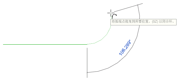 通过绘制连接弧的两个端点的弦指定起点-终点-半径弧,然后使用第三个点指定角度或半径。