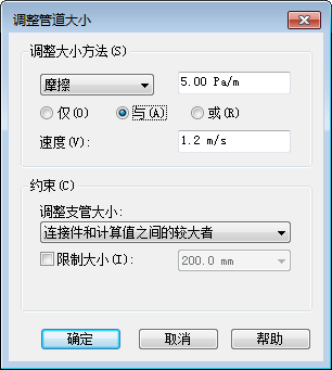 使用“调整管道大小”对话框中的选项,可以选择方法本身(选择“仅”),或选择与其他方法组合(选择“与”或“或”)。