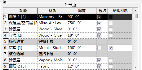 一个层指定给一个行。 它的厚度固定,并可以延伸墙的高度。 可以在所指定的行中修改它的厚度。 还可以将结构材质指定给每个图层。